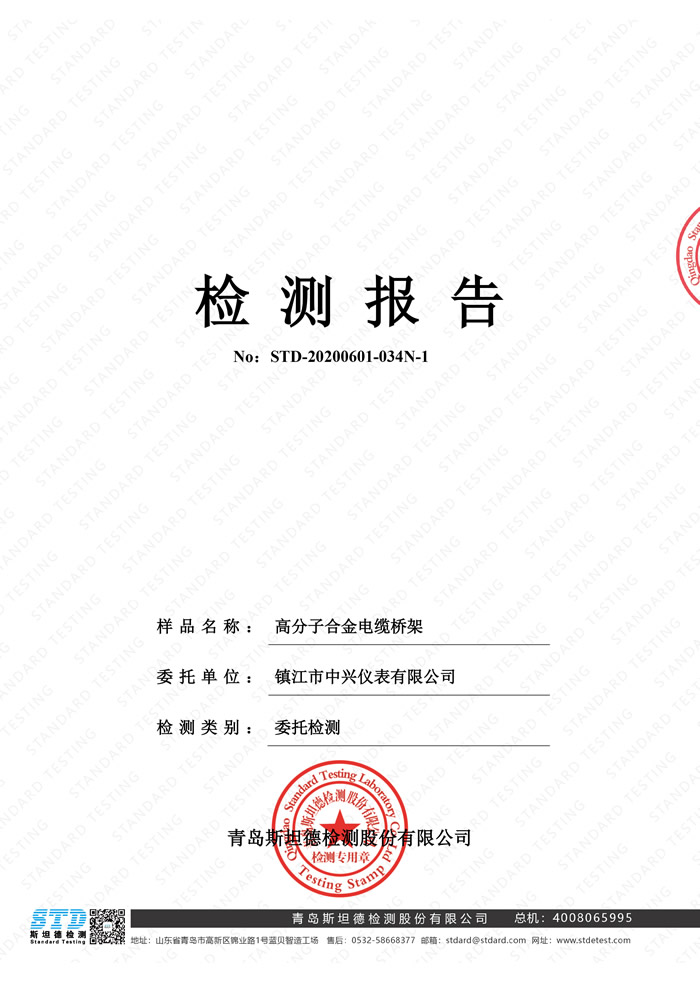 資質(zhì)證書(shū) Qualification certificate高分子合金電纜橋架檢測(cè)報(bào)告 STD-20200601-034N-1